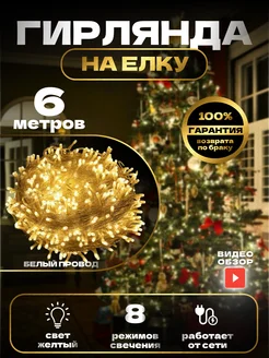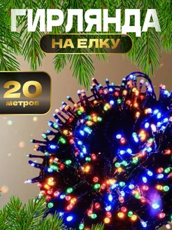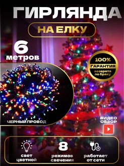 Гирлянда на елку 6 метров разноцветная с черным проводом