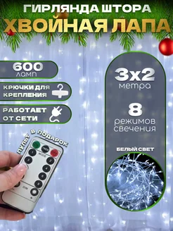 Гирлянда штора белая хвойная лапа 3х2 роса мишура