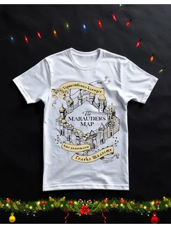 Футболка с принтом Гарри Поттер, белая Карта мародеров