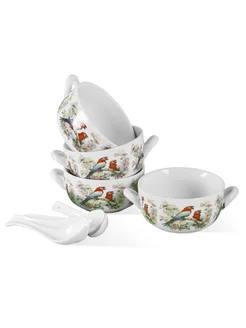 Бульонница набор с ложками 4 штуки фарфор
