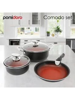 Набор кастрюля сковорода ковш со съемной ручкой 26 см