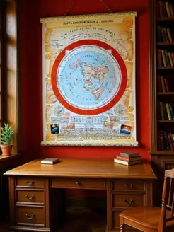 Азимутальная Карта Земли и модель Плоского Мира Наклейка А3