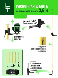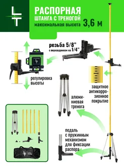 Штатив для лазерного уровня 3.6 метра с микролифтом