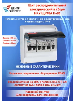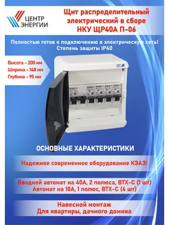 Щит распределительный в сборе, электрощиток 32А-6М, н2 IP40
