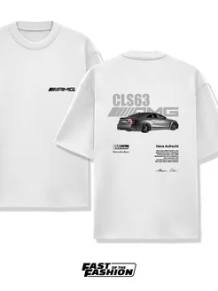 Футболка оверсайз длинная с принтом Mercedes AMG CLS63