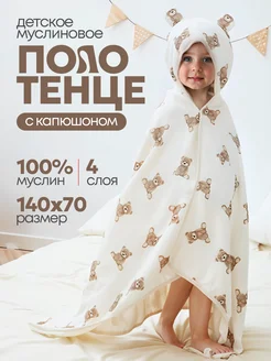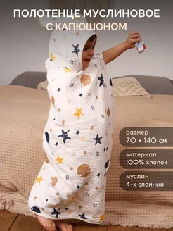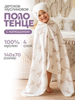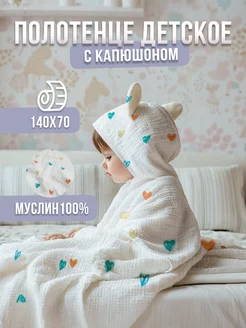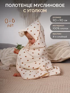 Полотенце муслиновое детское с капюшоном для новорожденных