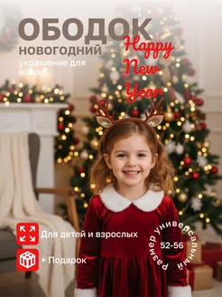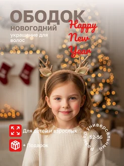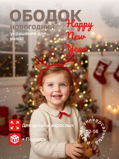 Новогодний Ободок Плюшевый с Рожками Оленя