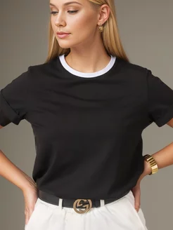 Футболка сиреневая плотная для офиса базовая большие размеры