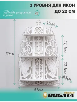 Полка для икон настенная иконостас большой белый, киот