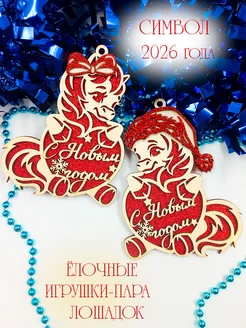 Игрушки на ёлку — лошадки 2026, комплект из двух фигурок
