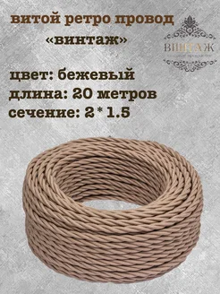Ретро провод, кабель винтажный витой "Винтаж", 2х1,5, 20м