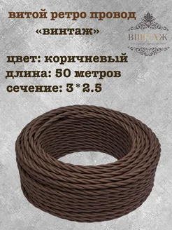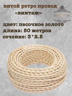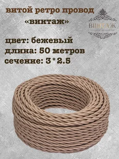 Ретро провод, кабель винтажный витой "Винтаж", 3х2,5, 50м