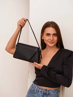Сумка багет маленькая через плечо черная