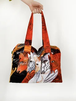 Сумка хозяйственная дорожная на молнии "Лошадки"