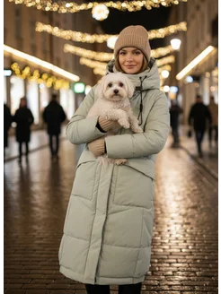Пуховик зимний длинный с капюшоном