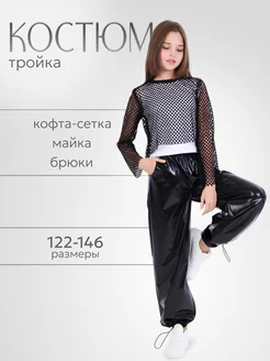 костюм блестящий тройка с сеткой