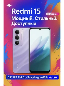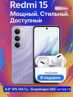 Телефон Redmi 15 6 128 ГБ Purple фиолетовый + наушники