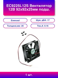 1шт. Ec9225l12s Вентилятор 12В 92х92х25мм подш. скольжения