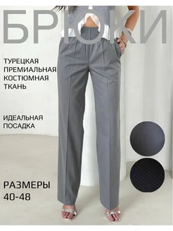 Брюки офисные замшевые на резинке прямые с карманами