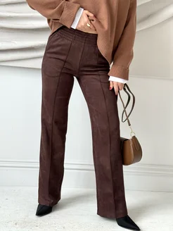 Брюки замшевые классические прямые на резинкес карманами