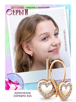Ювелирные серьги Сердечки с фианитами
