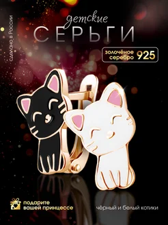 Ювелирные серьги Котики черно-белые
