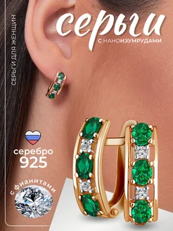 Ювелирные серьги с изумрудами и фианитами дорожки