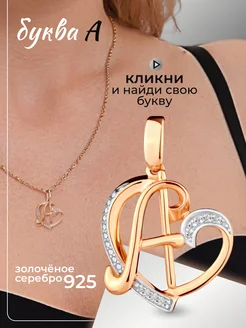 Ювелирная подвеска с фианитами буква А в сердечке