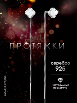 Ювелирные серебряные серьги протяжки Клевер