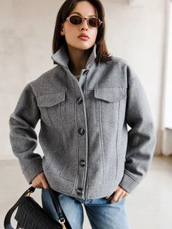 Шерстяной бомбер укороченный оверсайз