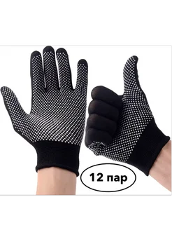 Перчатки рабочие нейлоновые ПВХ микроточка черные 12 пар