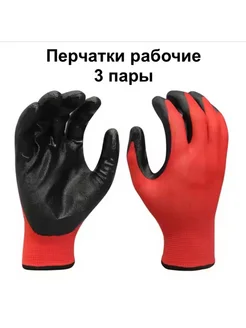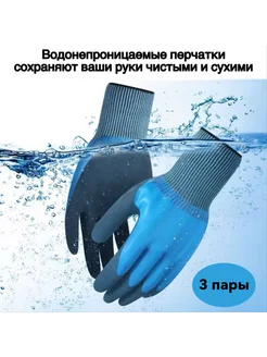 Перчатки рабочие водонепроницаемые прорезиненные, 3 пары