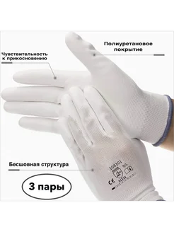 Перчатки рабочие защитные с полиуретановым покрытием, 3 пары