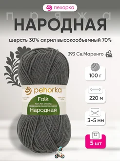 393-Св.маренго полушерсть Народная пряжа 5 мотков