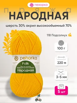 118-Подсолнух полушерсть Народная пряжа 5 мотков