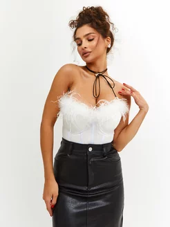 Кроп топ корсет вечерний с перьями