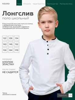 Лонгслив школьный футболка-поло рубашка с длинными рукавами