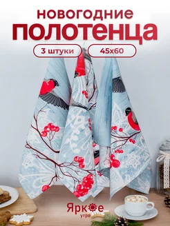 Новогодние полотенца кухонные набор 45х60 3 шт Снегири