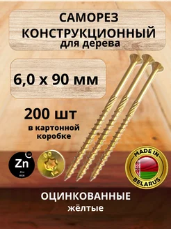 Саморезы по дереву желтые 6 х 90 мм конструкционные 200 шт