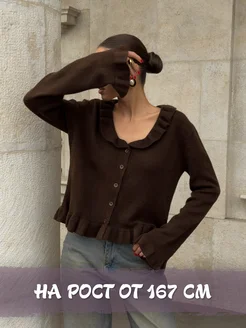 Кардиган вязаный укороченный с рюшами на пуговицах