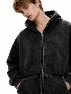 Зип худи мужское оверсайз с капюшоном на молнии без начеса