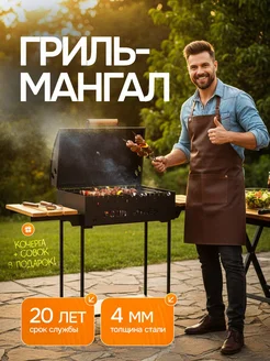 Гриль мангал 4 мм с крышкой полками и датчиком для шашлыка