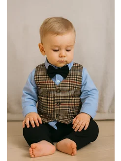 Костюм тройка для мальчиков жилет, брюки, рубашка, бабочка