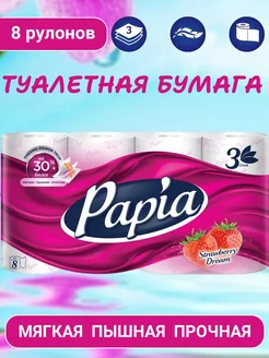 Туалетная бумага 3 слоя 8 рулонов "Клубничная мечта"