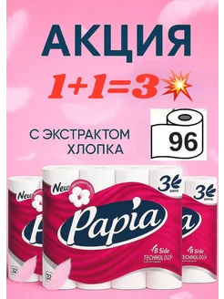 Туалетная бумага 32 рулона, 3 слоя Papia