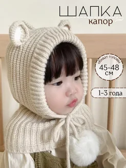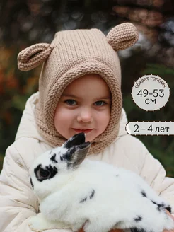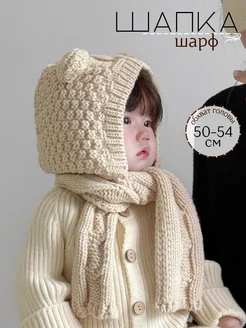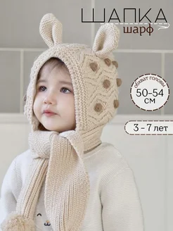Утепленная шапка-шарф вязаная от 2-4 лет