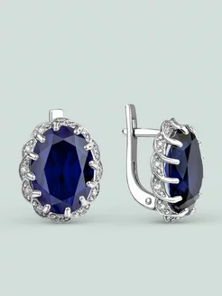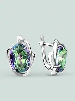 Серьги с крупным камнем топаз London Blue 14х10, серебро