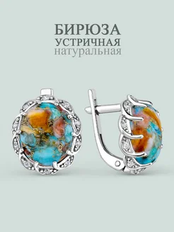 Серебряные серьги 925 украшение с натуральным камнем Агат
