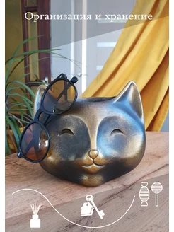 Большое кашпо - органайзер Кот золотой