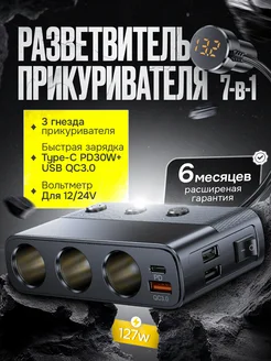 Разветвитель прикуривателя быстрая зарядка TYPE-C USB